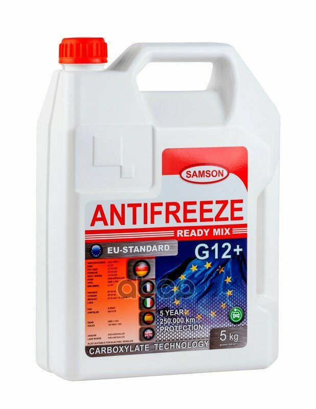 Антифриз, готовый раствор EU-Standard G12+ long life красный -37°C, 5кг SAMSON арт. 800992 интересное:
