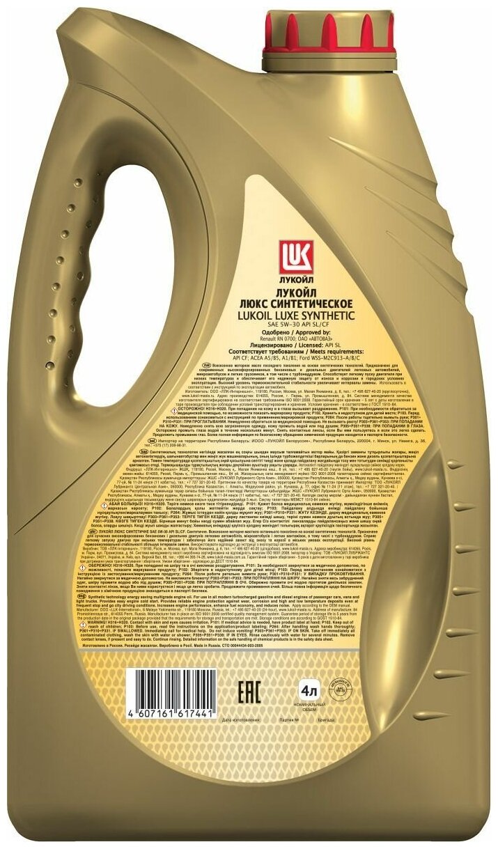 Лукойл / 196256 / 5W-30 люкс API SL/CF 4л (синт. мотор. масло)