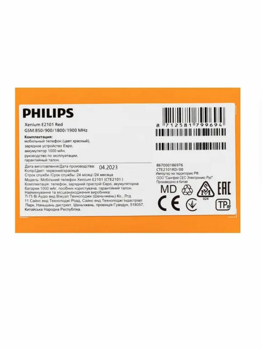 99015079284 Сотовый телефон Philips Xenium E2101 красный