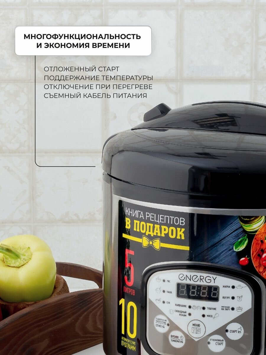 Мультиварка ENERGY EN-257, 900 Вт, 5 л, 10 программ, антипригарное покрытие, чёрная