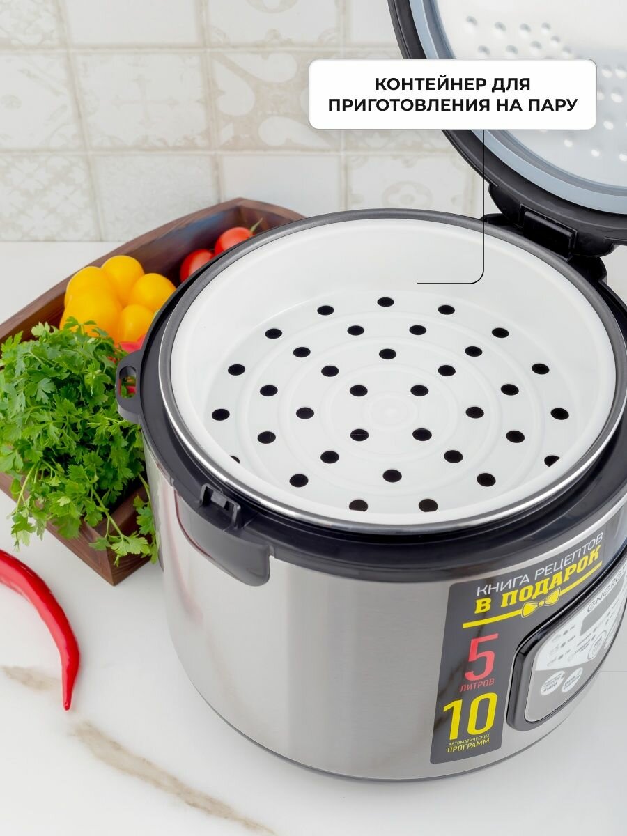 Мультиварка на 5 л 900Вт, 10 программ: Рис, Каша, Суп, Жарка, Йогурт, на пару, Выпекание, Тушение, Мяс, свободный режим