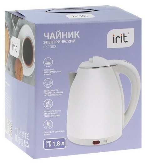 IRIT Чайник электрический Irit IR-1303, металл, 1.8 л, 1500 Вт, белый интересное: