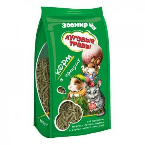 Корм "зоомир Луговые травы" для кроликов и грызунов, гранулы, 800 г