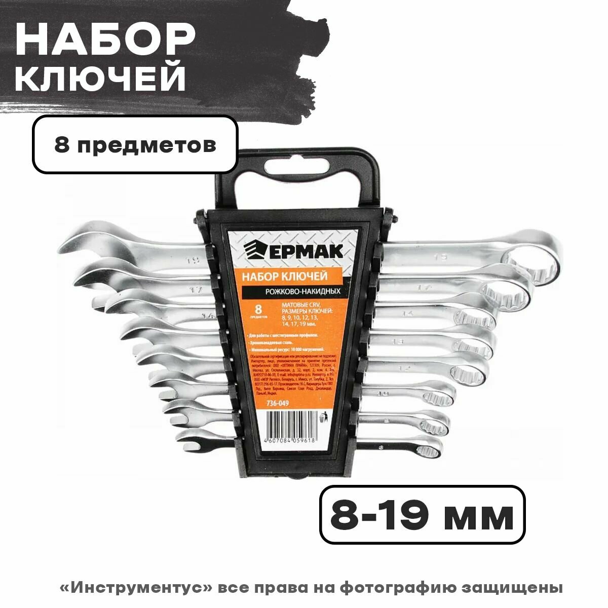 Купить Ключ рожково-накидной, набор 8 предметов, 8-19 мм, ермак 736-049