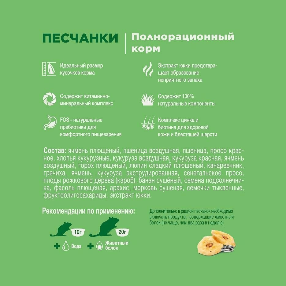 | Плюсы: | Песчанки любят этот корм |