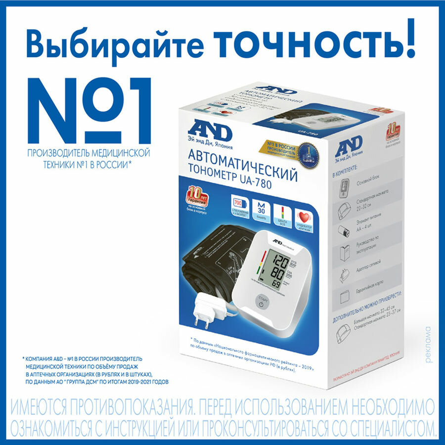 Тонометр AND UA-780 AC автоматический + Адаптер