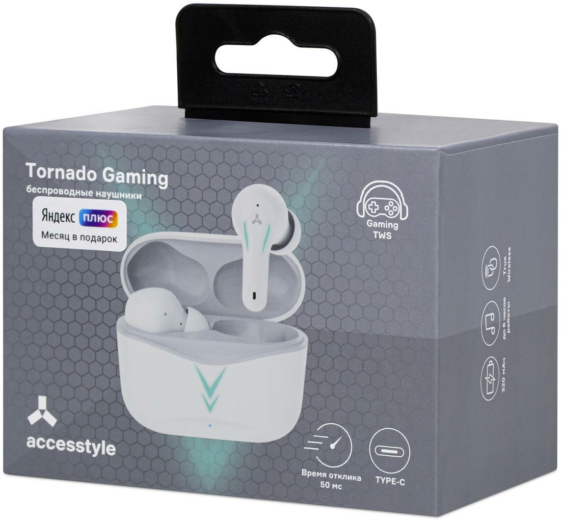 Наушники Accesstyle Tornado Gaming TWS, игровые, до 6 часов, BT 5.1, отклик 50 мс, белые