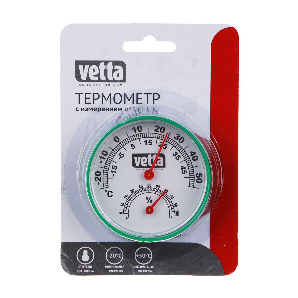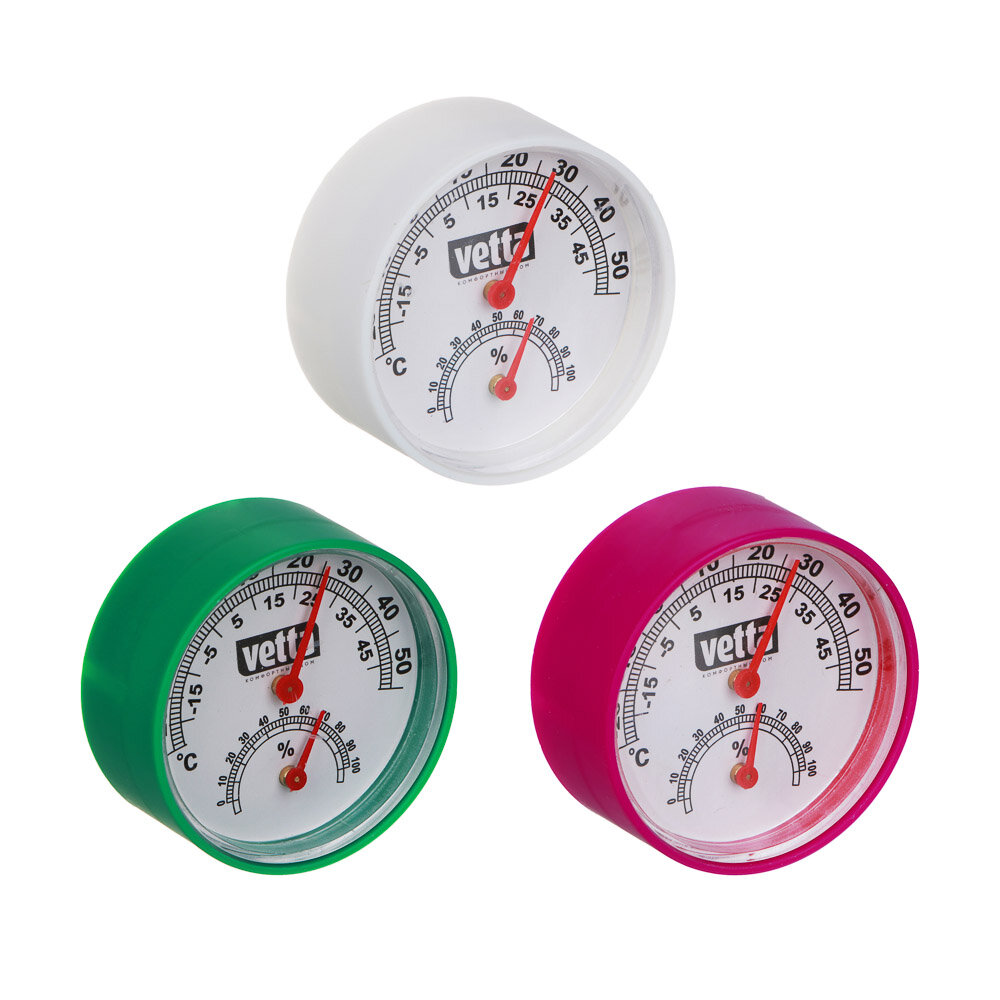 VETTA Термометр + влагомер на блистере, 6, 3см, металл, пластик, 3 цвета