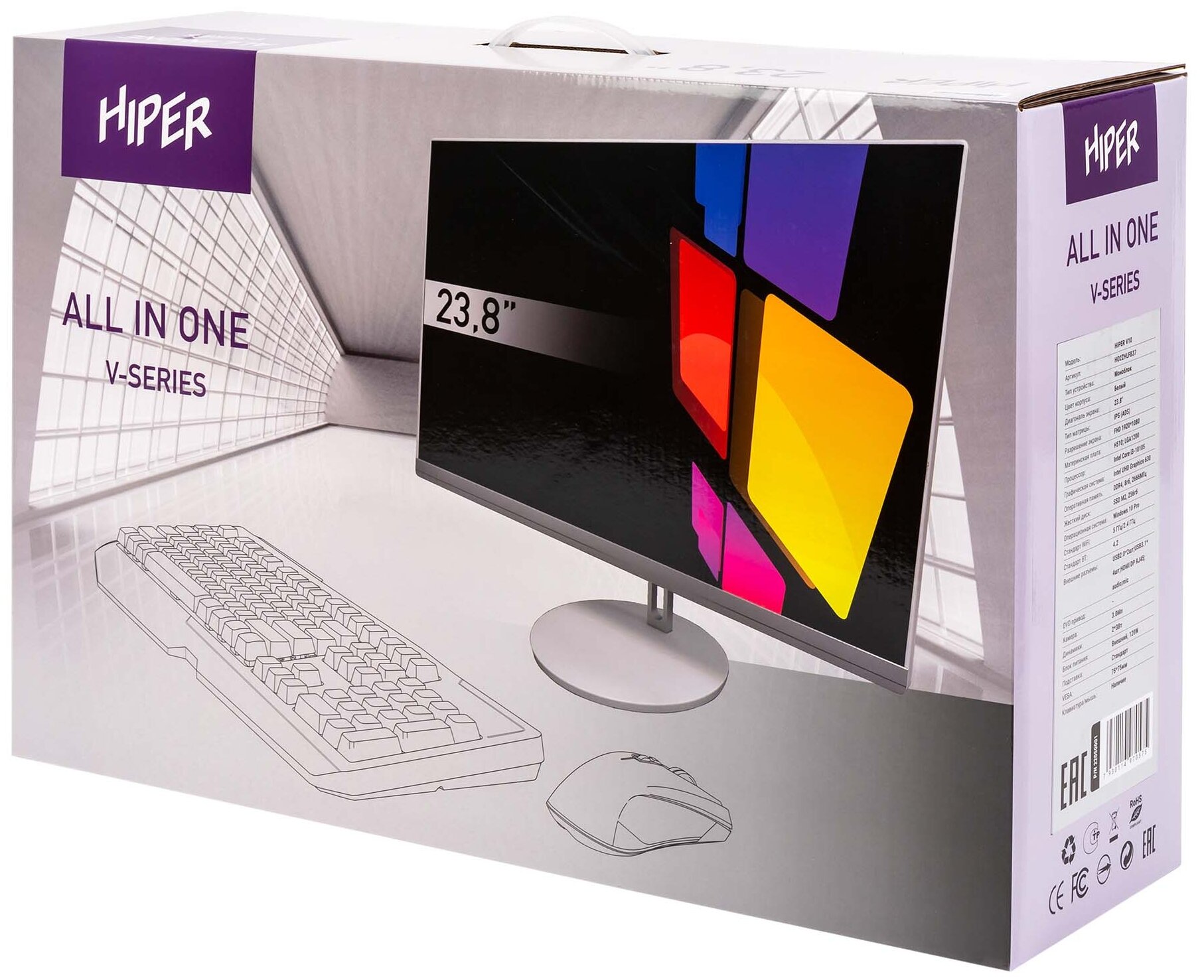 Моноблок Hiper Power - V10, 23.8", Intel Core i5 10500 3100MHz, SODIMM DDR4 16GB, SSD 512GB, Intel UHD Graphics, Wi-Fi, Bluetooth, Белый, Windows 10 Pro 64, Monoblock, HO2ZHLFB4W