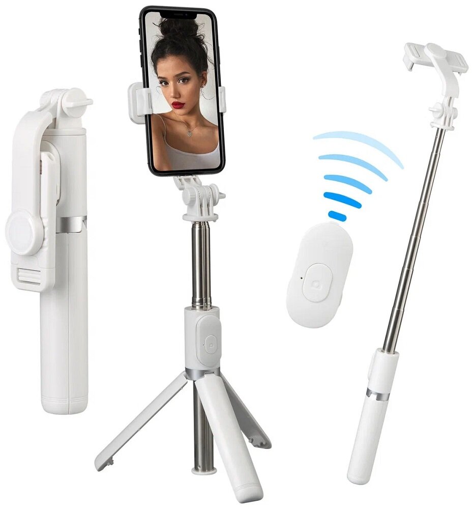 Купить Монопод / Трипод / Селфипалка с Bluetooth пультом R1S / Монопод для селфи / белый