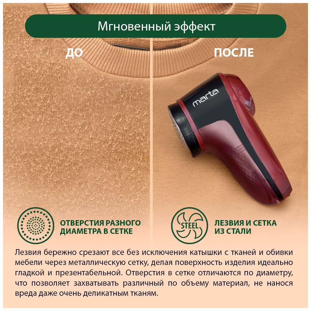 СохранитьМашинка для удаления катышков MARTA MT-2235 темный гранат маш. для удаления катышков интересное: