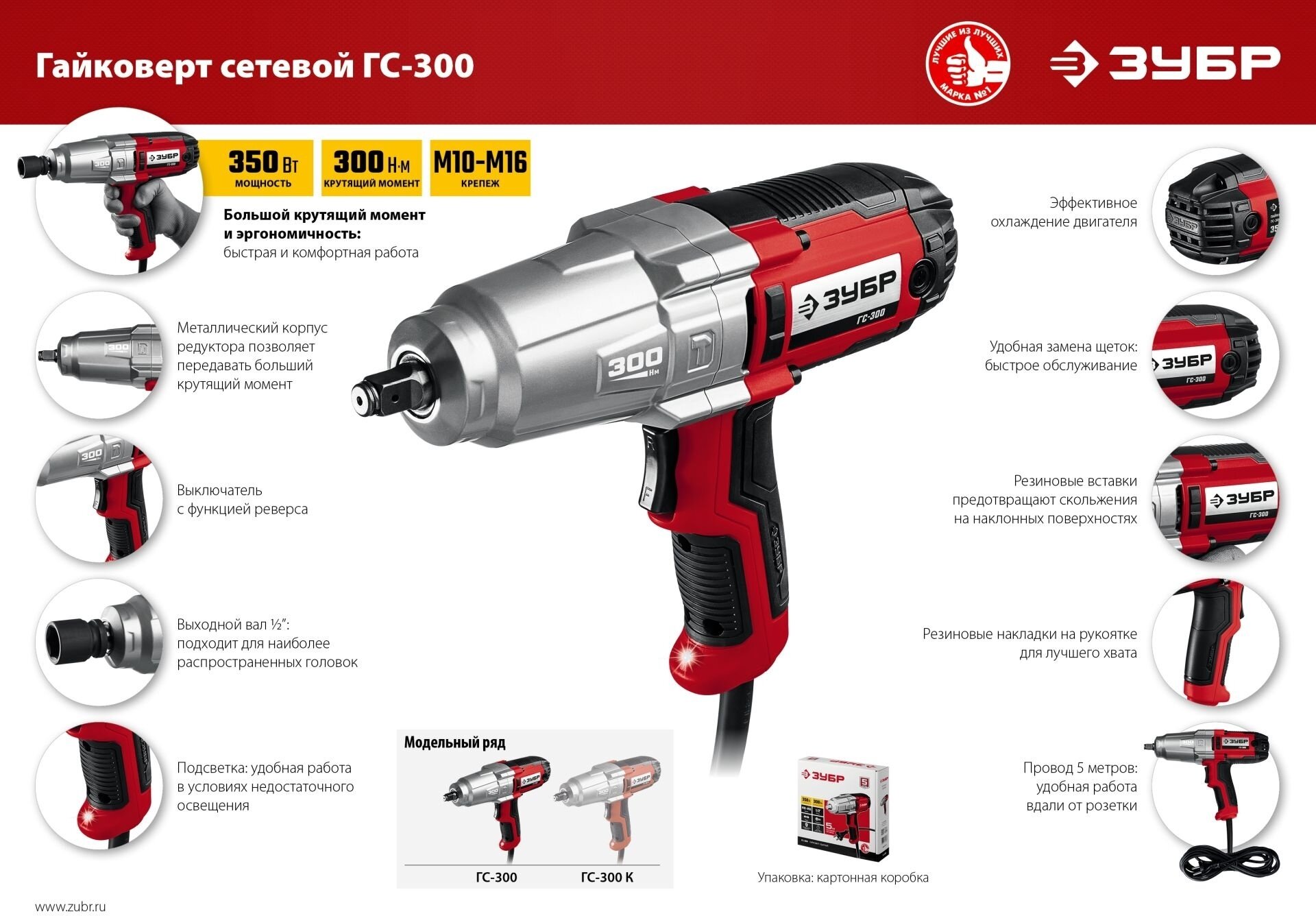 ЗУБР 300 Н·м, 350 Вт, ударный гайковерт (ГС-300)
