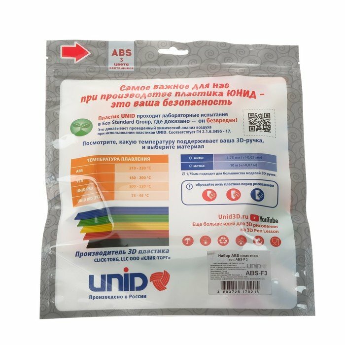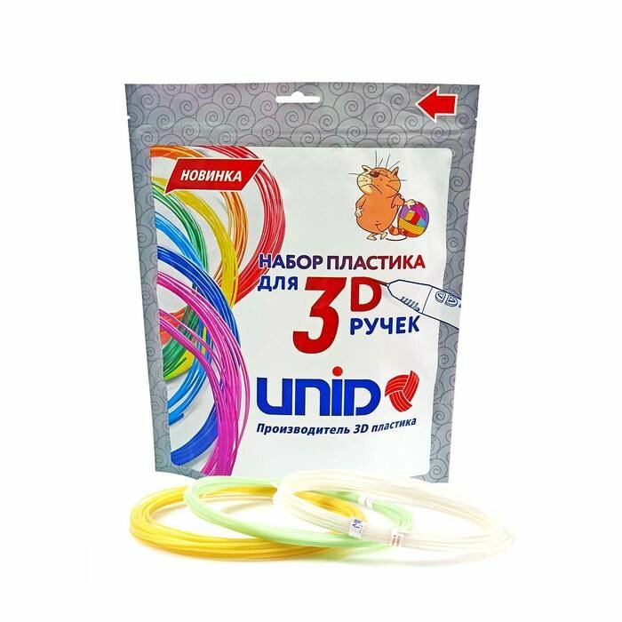 Пластик UNID ABS-"F", для 3Д ручки, по 10 м, 3 цвета в наборе, светящийся (комплект из 3 шт) интересное:
