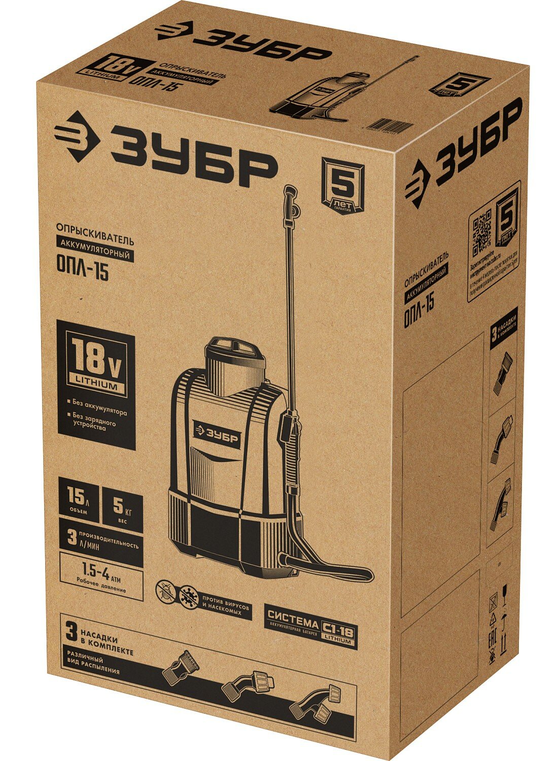 Купить ЗУБР 15 л, аккумуляторный опрыскиватель (ОПЛ-15)