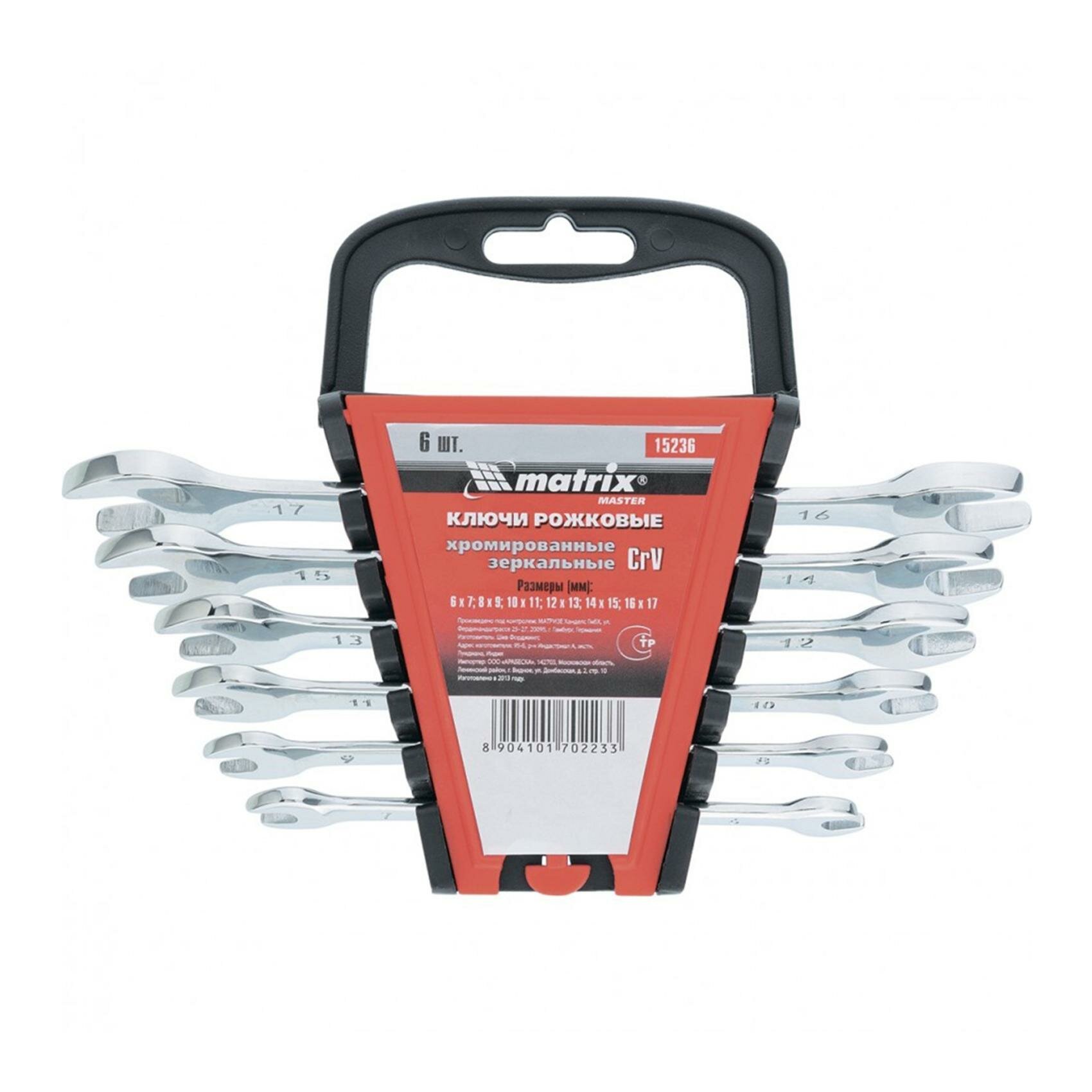 Набор ключей рожковых 6 шт, 6-17 мм, CrV, Elliptical, зеркальное хромирование Matrix Master 15236