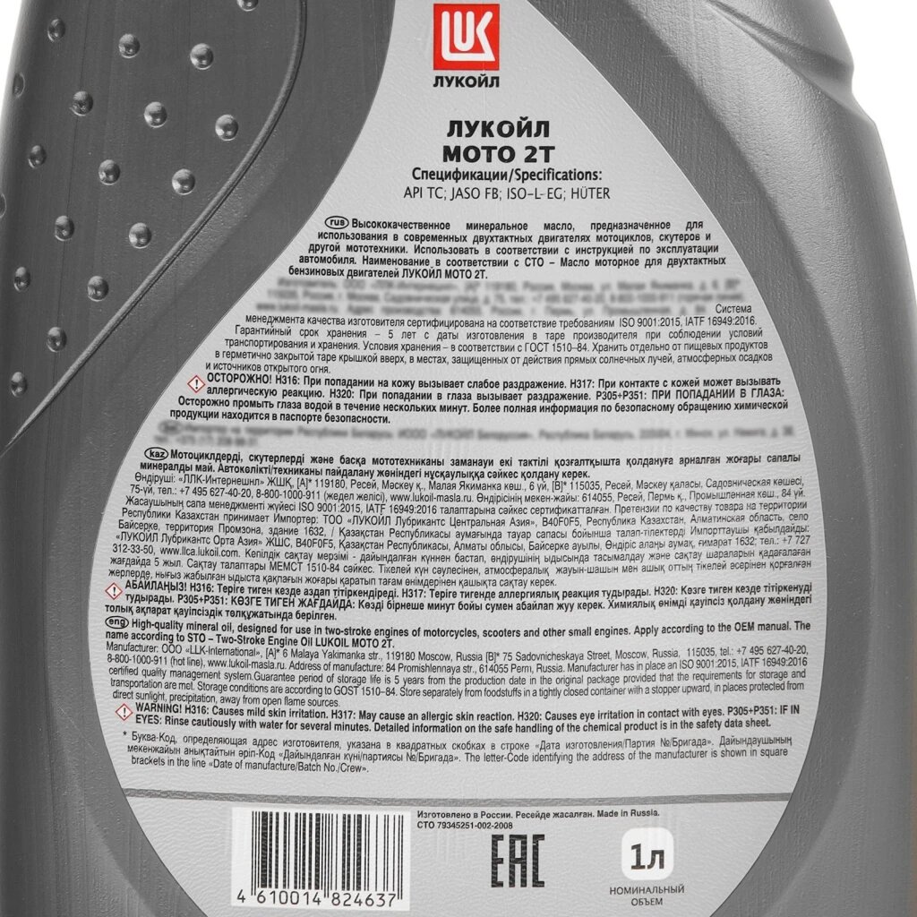 Минеральное моторное масло ЛУКОЙЛ Мото 2Т, 1 л, 1 кг