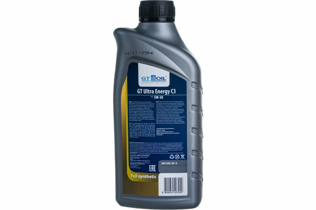GT OIL 8809059407929 Масло моторное GT Ultra Energy C3, SAE 5w30, API SM,SN/CF, 1 л 1шт