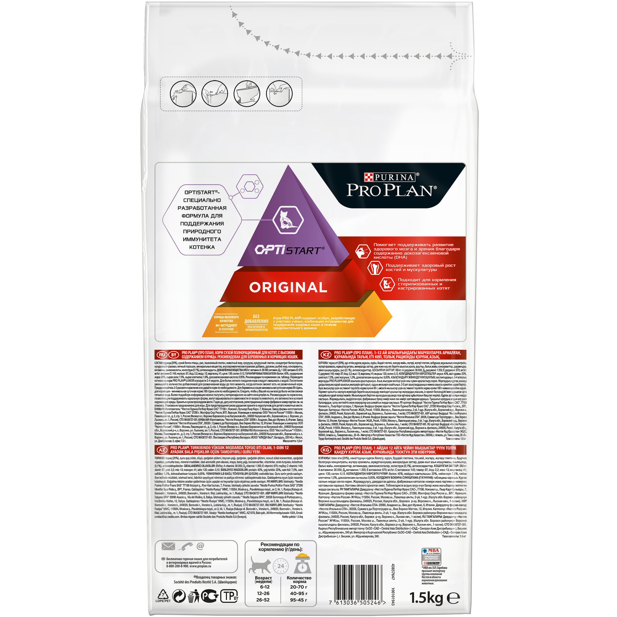 Сухой корм для котят Purina Pro Plan ORIGINAL KITTEN OPTISTART, с высоким содержанием курицы, 6 шт. х 1.5 кг