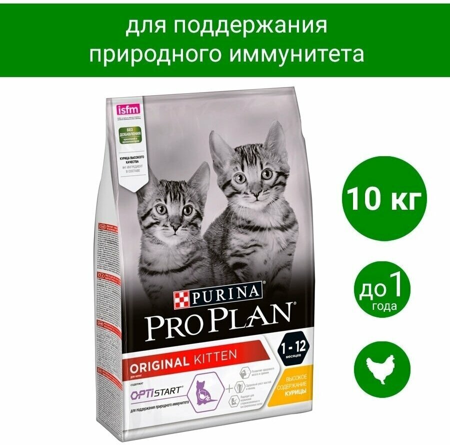 PRO PLAN 10 кг сухой корм для котят от 1 до 12 месяцев, с высоким содержанием курицы
