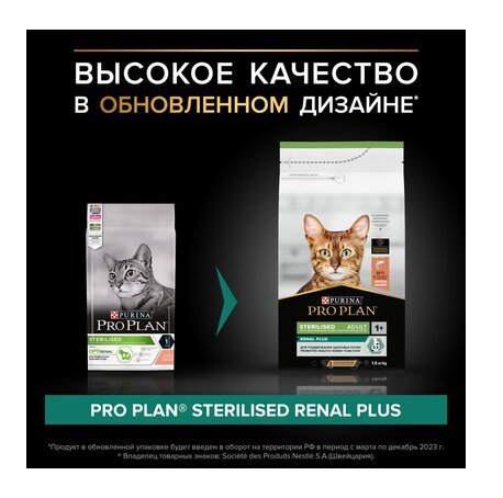 Сухой корм PRO PLAN Sterilised Adult Renal Plus для взрослых стерилизованных кошек для поддержания здоровья почек, с лососем 1,5 кг
