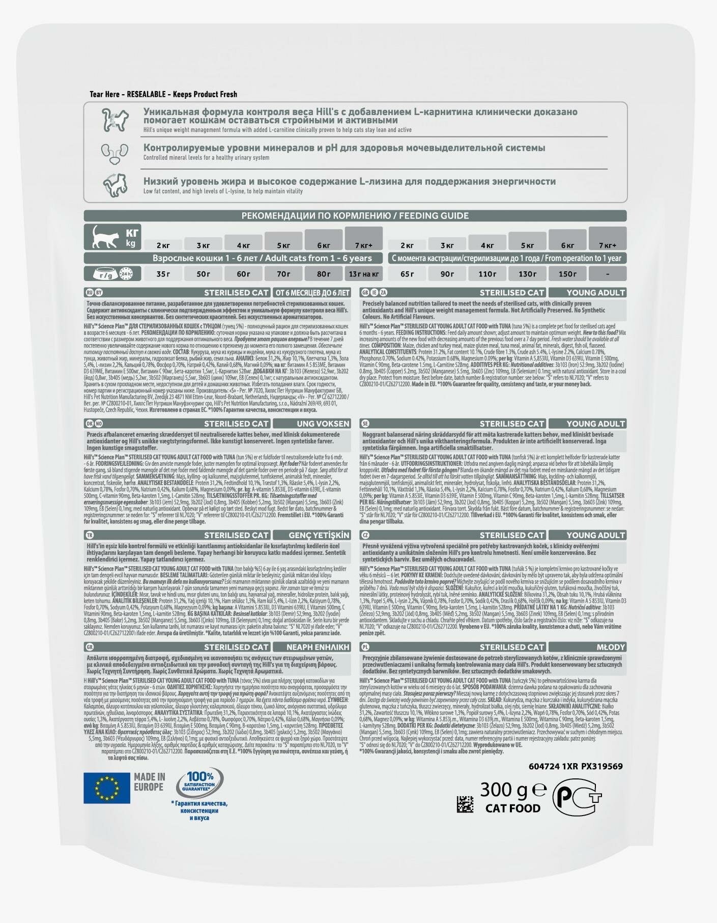 HILL’S SCIENCE PLAN YOUNG ADULT STERILISED CAT TUNA для взрослых кастрированных котов и стерилизованных кошек с тунцом (0,3 кг х 6 шт)