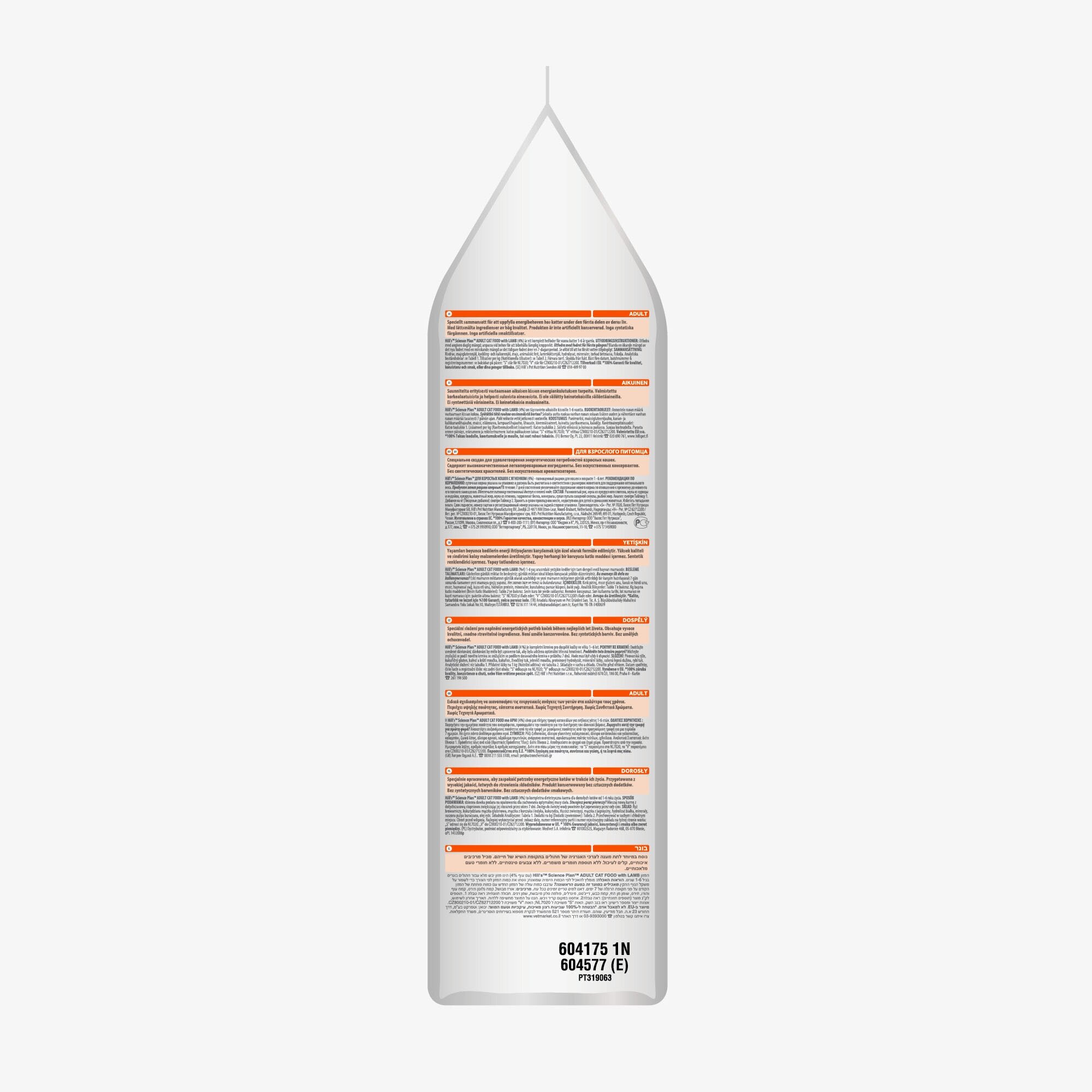 Сухой корм Hill's Science Plan для взрослых кошек для поддержания жизненной энергии и иммунитета, с ягненком, 1,5 кг, 1 пакет