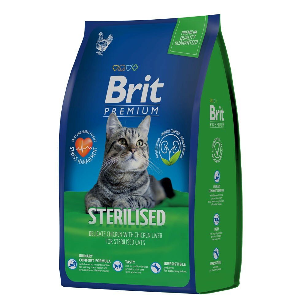 Корм сухой Brit Premium Cat Sterilised курица и печень для кастрированых котов, 8 кг