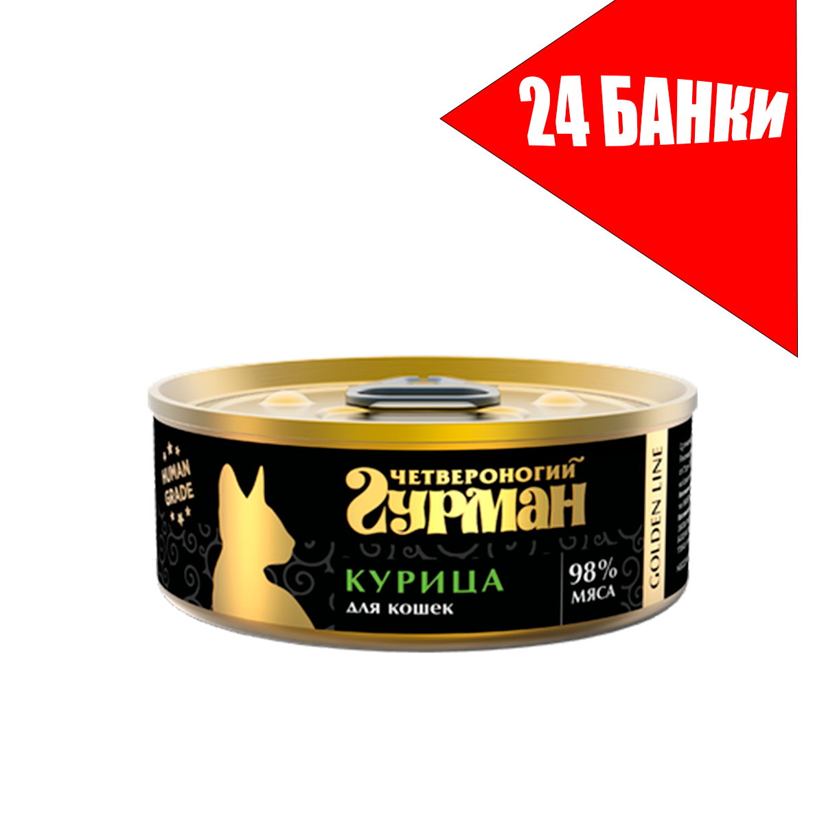 Четвероногий гурман GOLDEN LINE для взрослых кошек с курицей натуральной в желе 100 гр (100 гр х 24 шт)