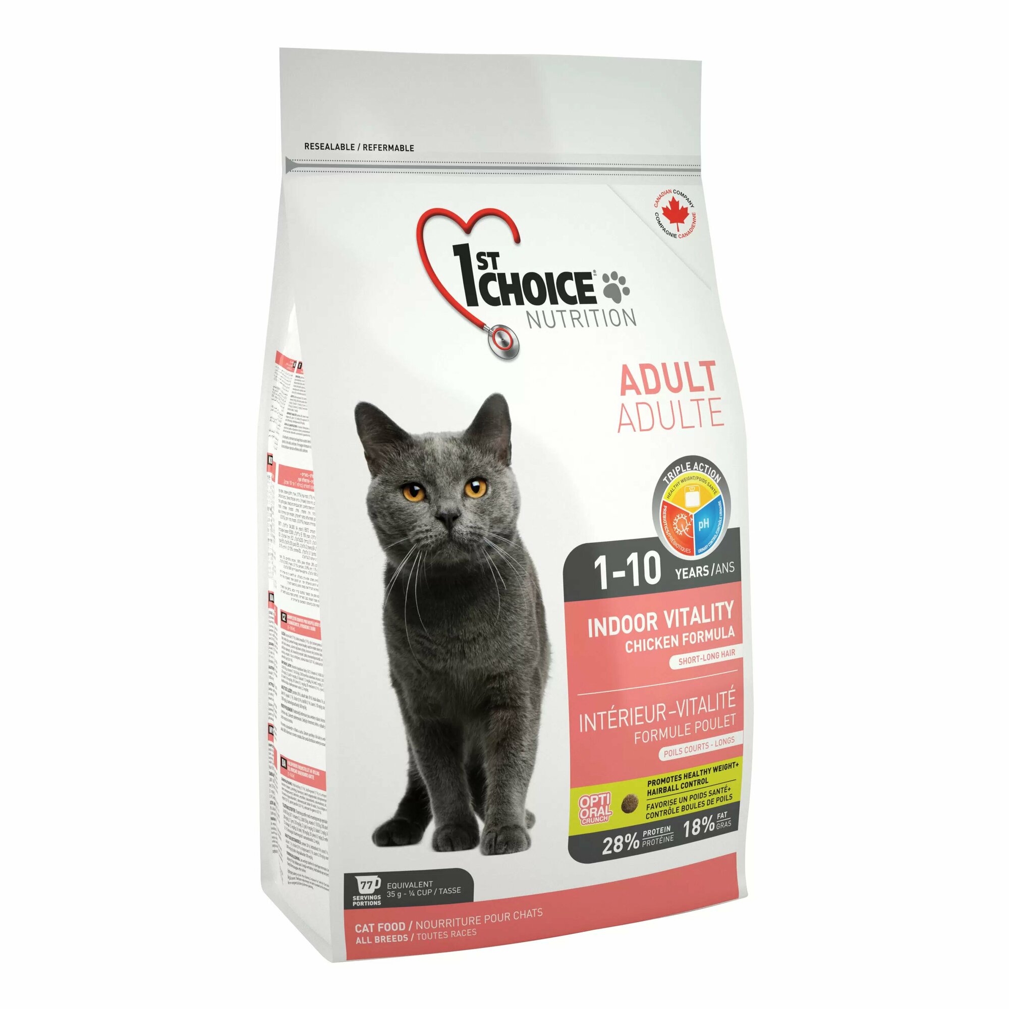 Корм сухой 1ST CHOICE VITALITY для живущих в помещении взрослых кошек, с курицей, 2,72 кг
