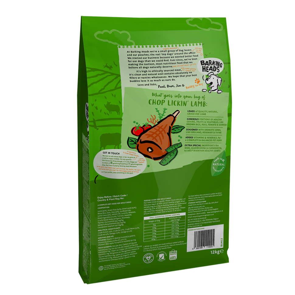 Barking Heads Для собак с ягненком и рисом "Мечты о ягненке", CHOP LICKIN' LAMB 12кг