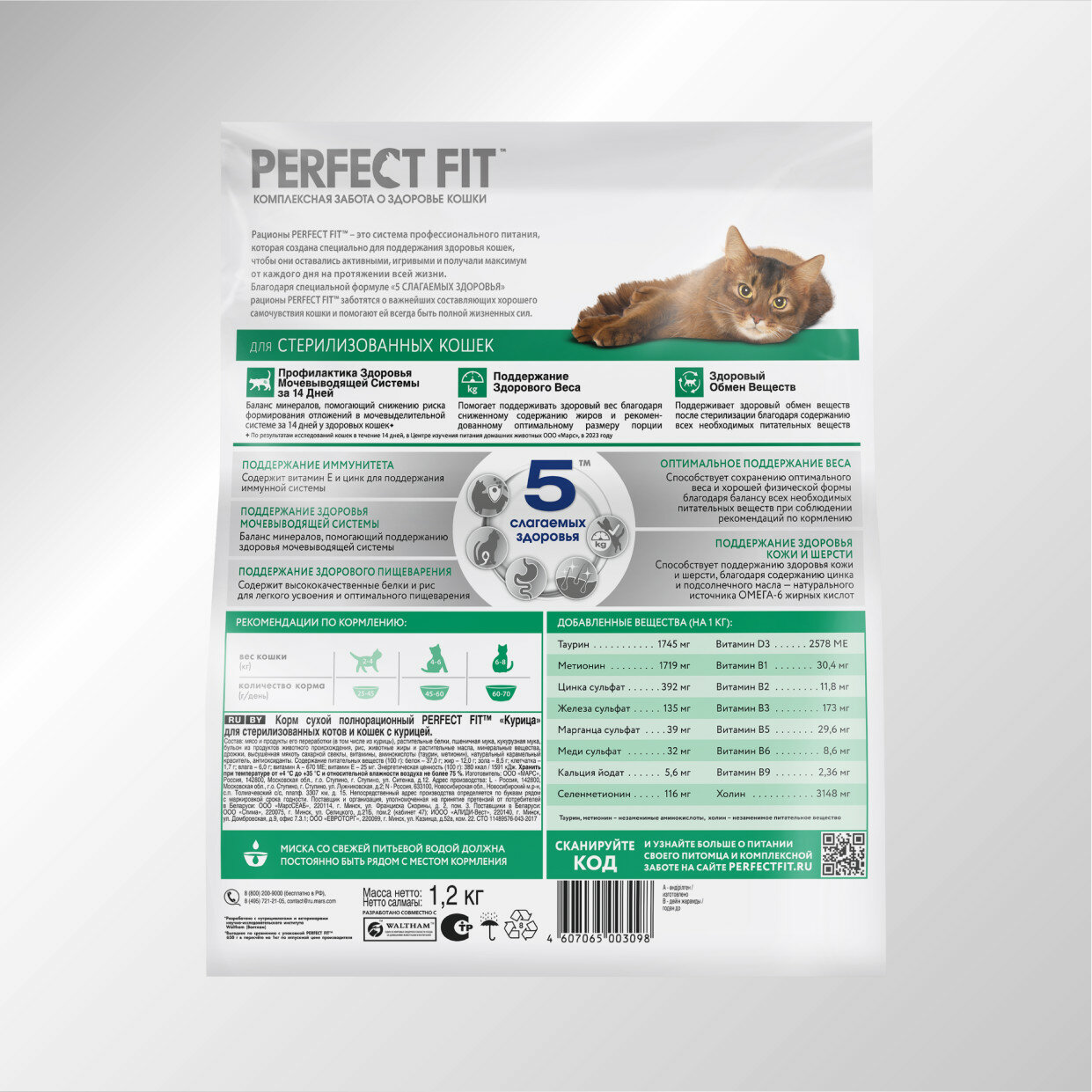 Купить Perfect Fit Сухой корм Perfect Fit для стерилизованных кошек, курица, 1,2 кг