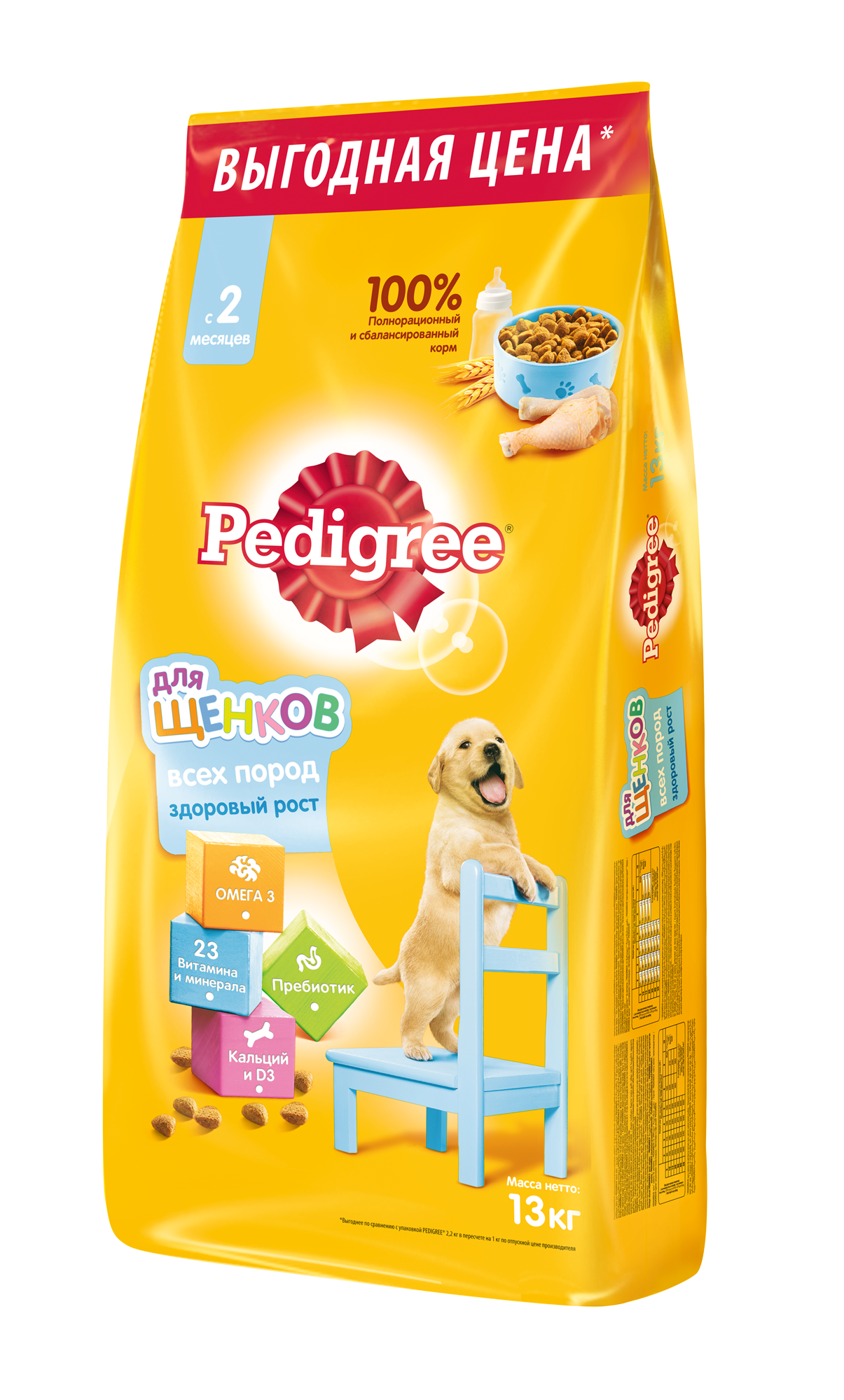 Корм сухой PEDIGREE полнорационный для щенков всех пород с 2 месяцев, с курицей, 13 кг