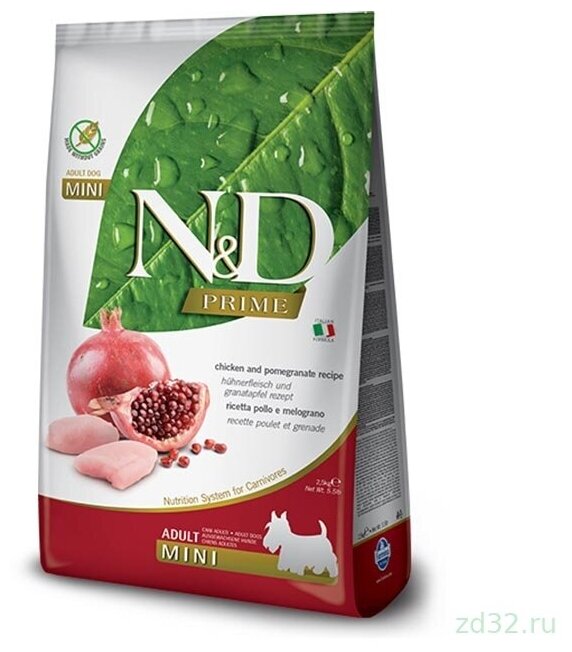 FARMINA DOG N&D PRIME ADULT MINI CHICKEN & POMEGRANATE беззерновой для взрослых собак маленьких пород с курицей и гранатом (2,5 кг)