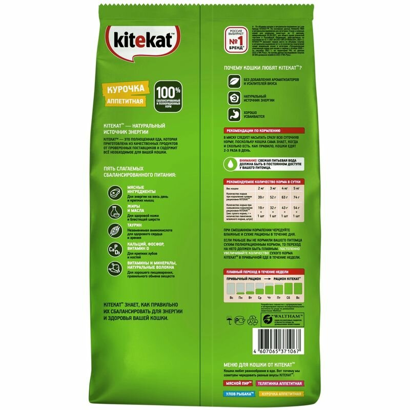 Kitekat/ Сухой корм для кошек, аппетитная курочка 2 шт. по 800 гр.