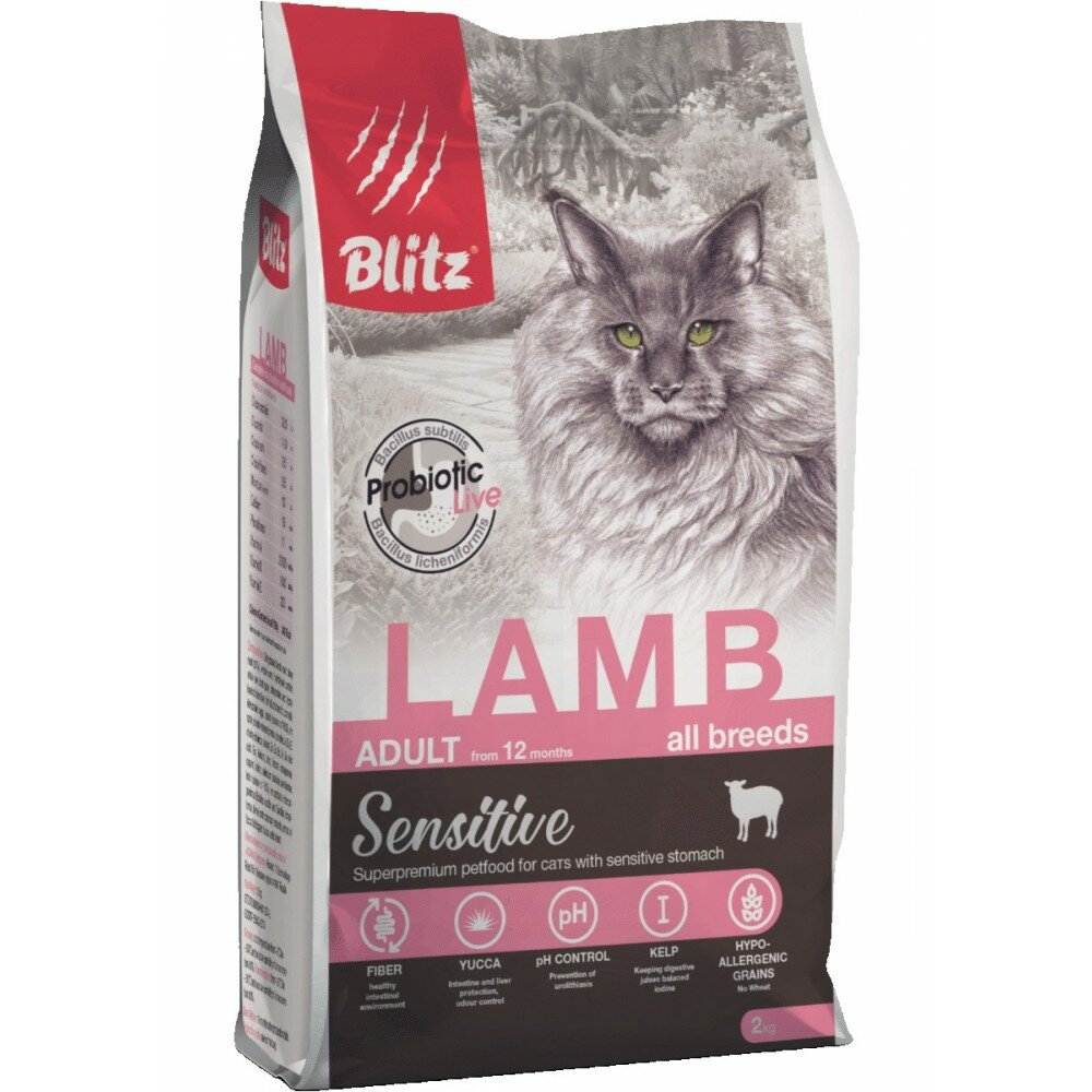 Blitz Sensitive Adult Cats Lamb полнорационный сухой корм для кошек, с ягненком - 2 кг