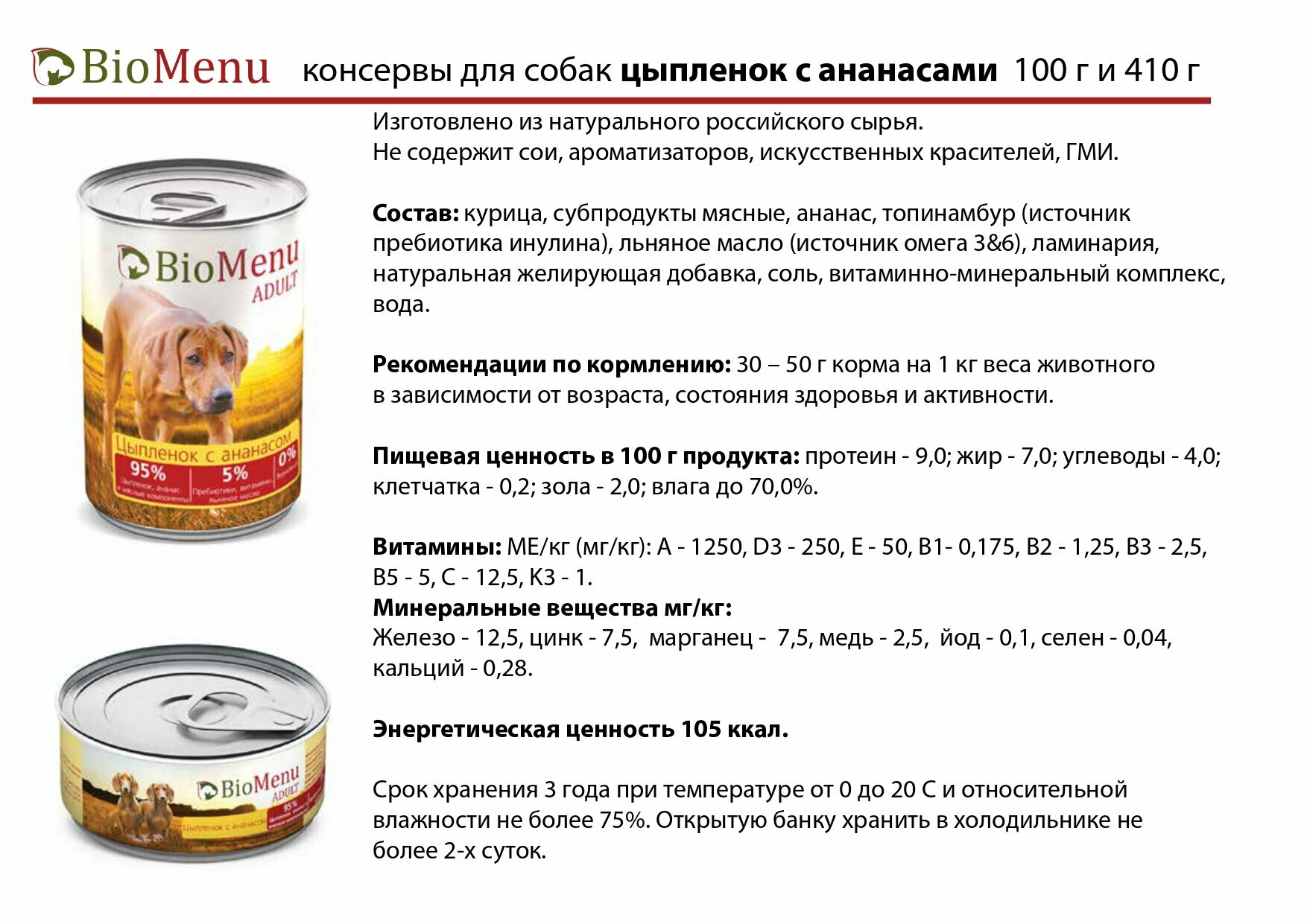 Ниже Вы можете прочитать отзывы на BioMenu ADULT Консервы д/собак Цыпленок с Ананасами 95%-мясо 410гр, ознакомится с подробными характеристиками, посмотреть интересные обзоры и фотографии на BioMenu ADULT Консервы д/собак Цыпленок с Ананасами 95%-мясо 410гр.