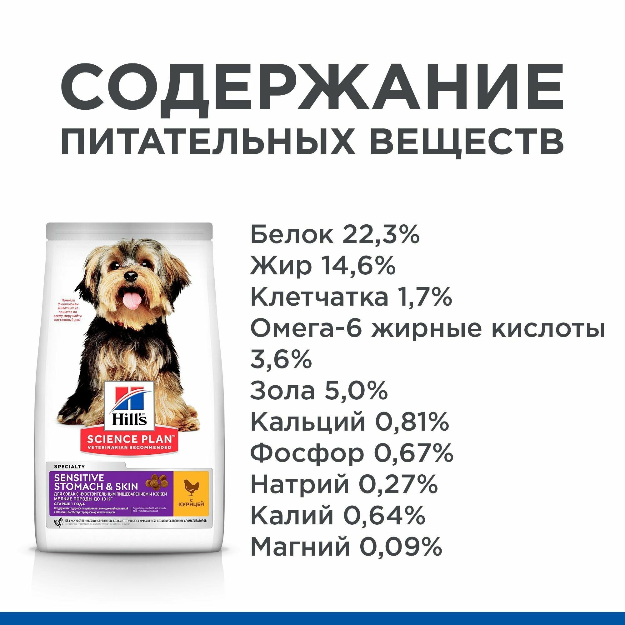 Hill's SP Sensitive Stomach & Skin Корм для собак мелких пород с чувствительной кожей и ЖКТ с курицей 1,5 кг