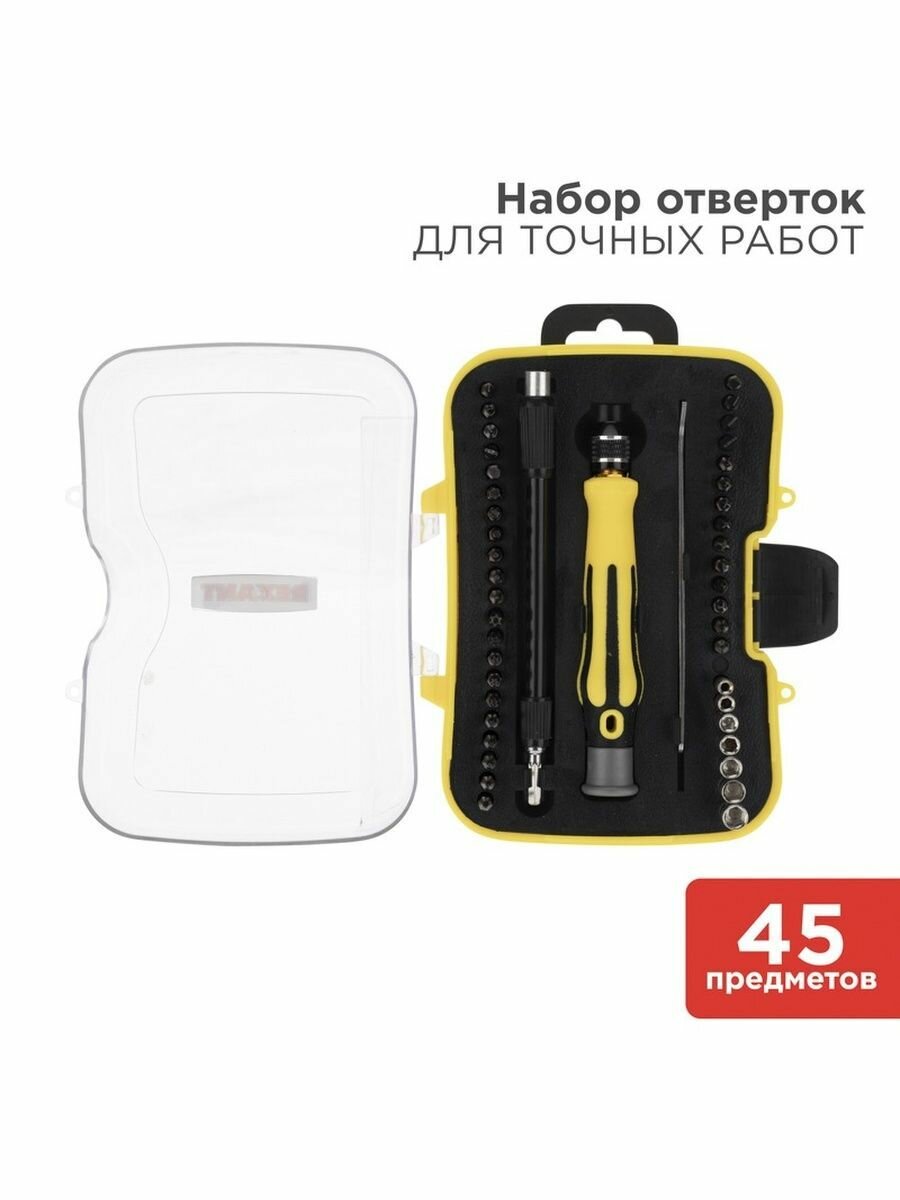 Набор отверток для точечных работ 45 предметов REXANT интересное: