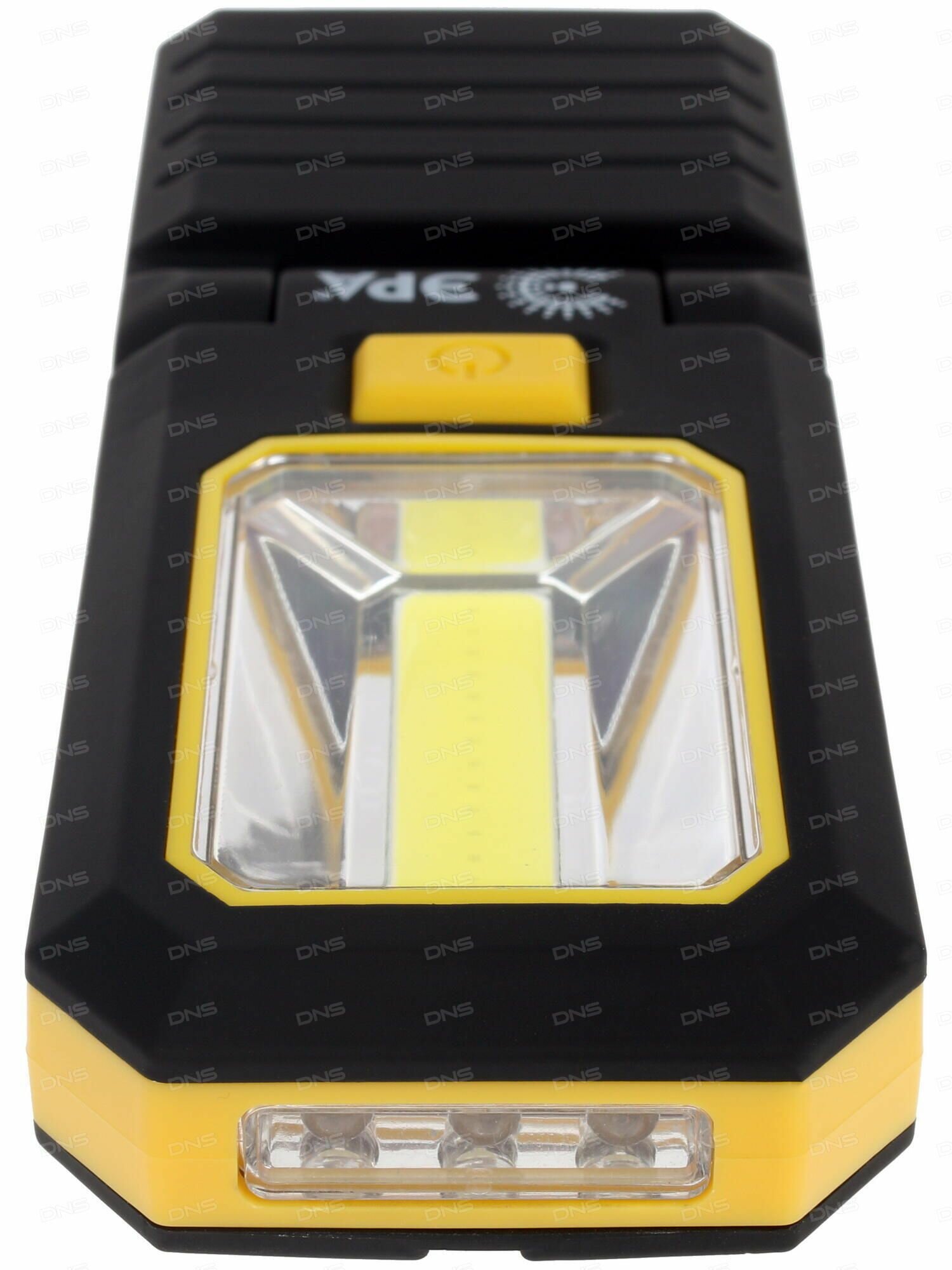 Фонарь (LED 5Вт COB+LED*3) Практик. черн-желт (3хААА) крючок. 2 магнита ЭРА