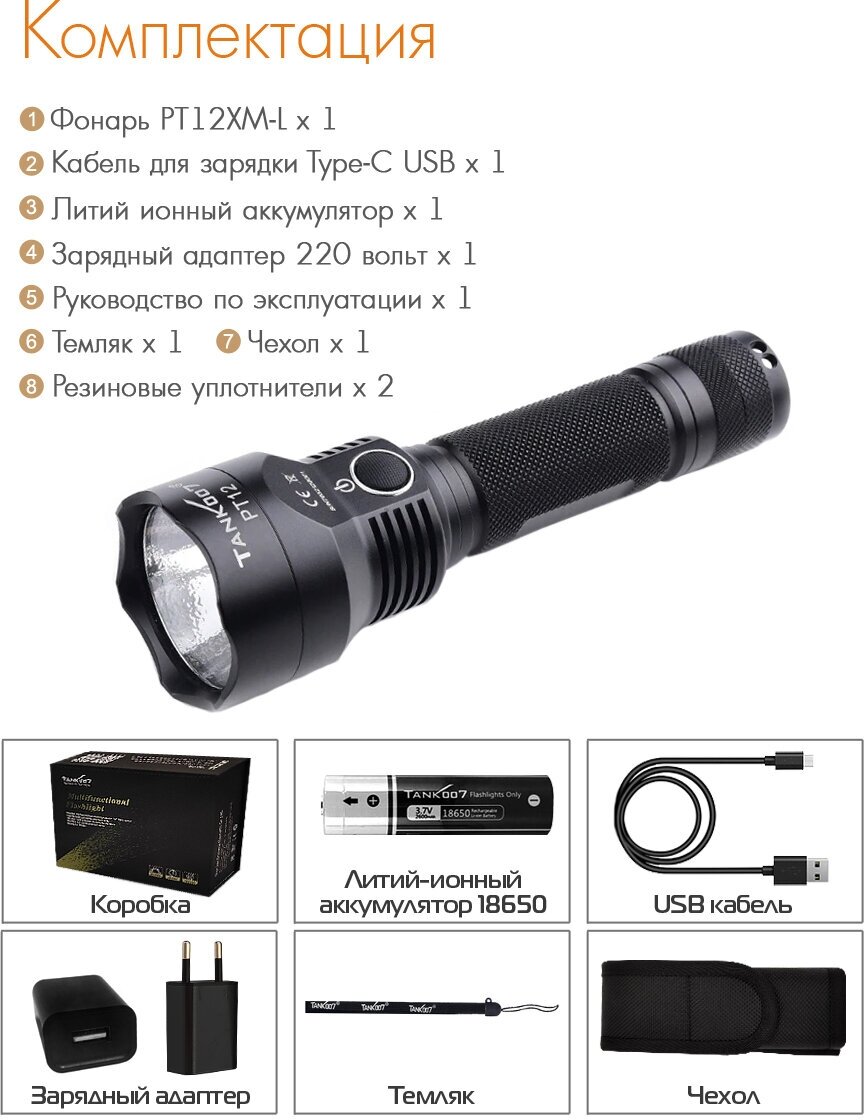 TANK007 PT12XML Светодиодный фонарь с комплектацией