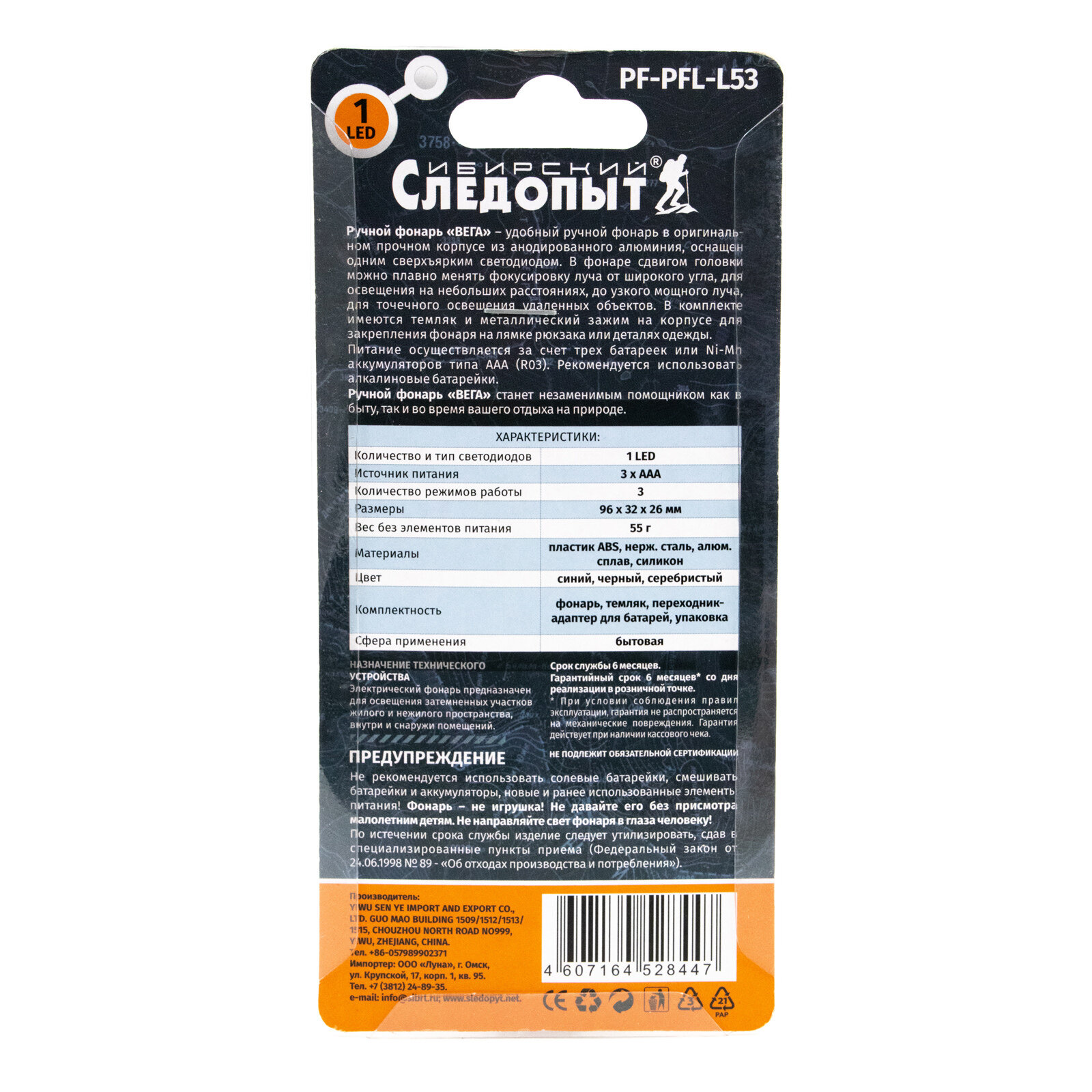 Фонарь Следопыт Сибирский Вега с зажимом, 1L, zoom, 3хААА интересное: