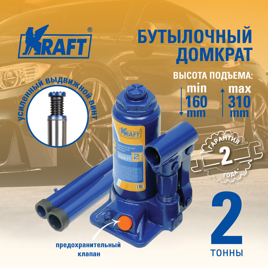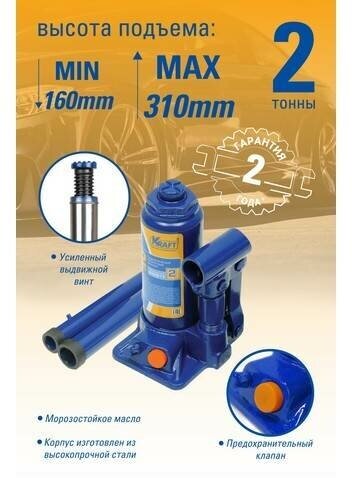Купить KRAFT KT800011 домкрат бутылочный 2 т. ( min 160mm-max 310mm)
