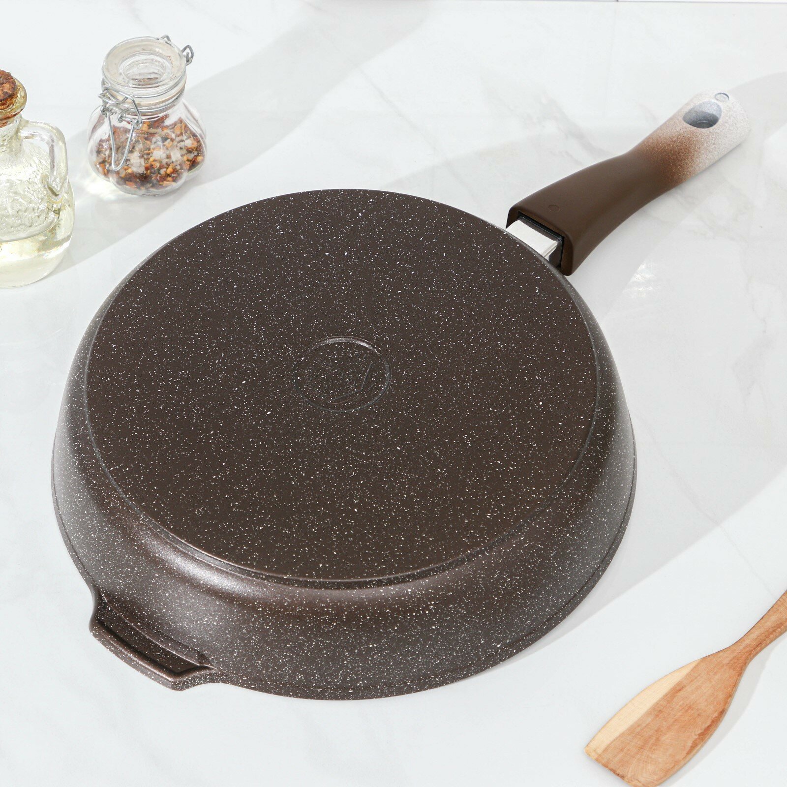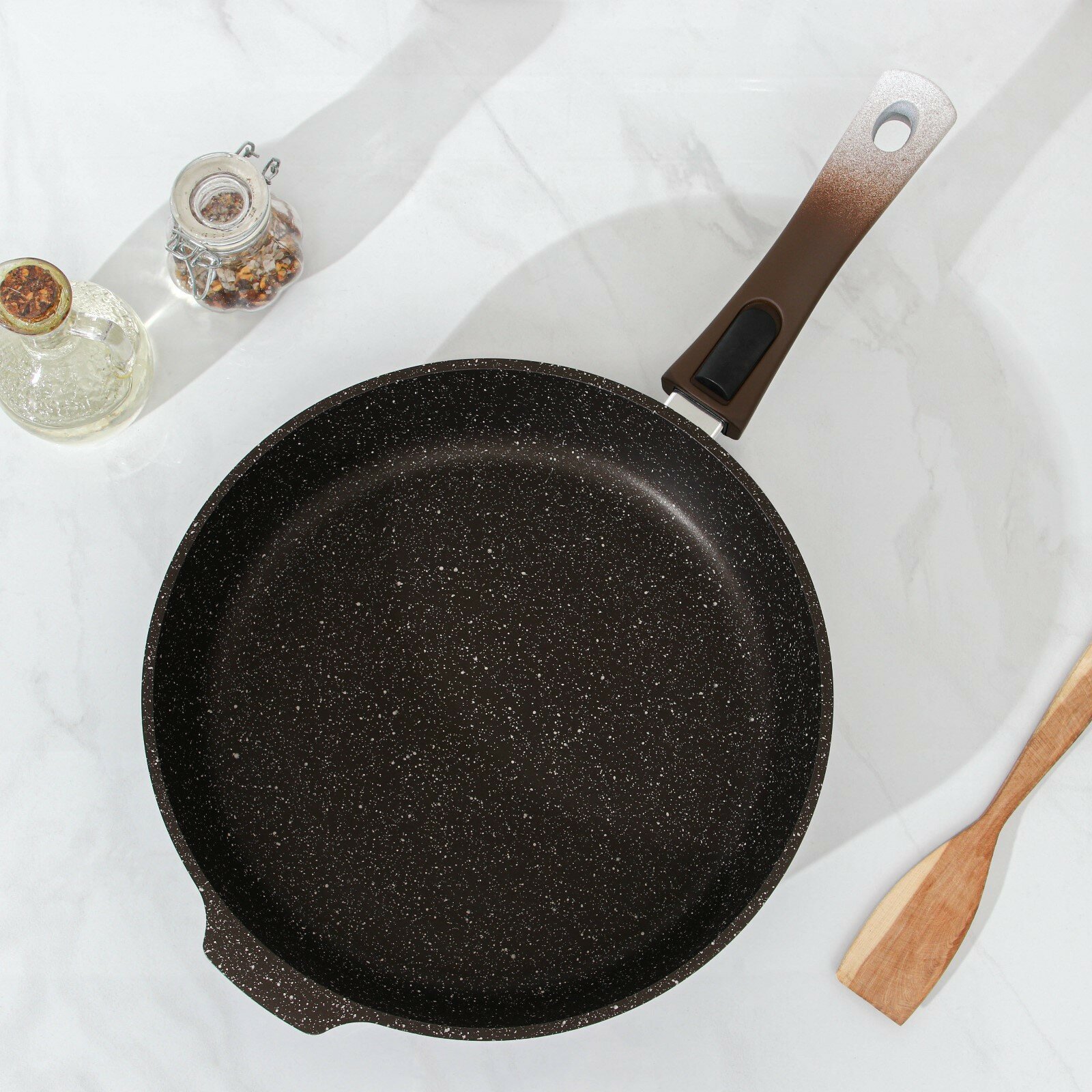 Сковорода, d=28 см, съёмная ручка, антипригарное покрытие, цвет кофейный мрамор