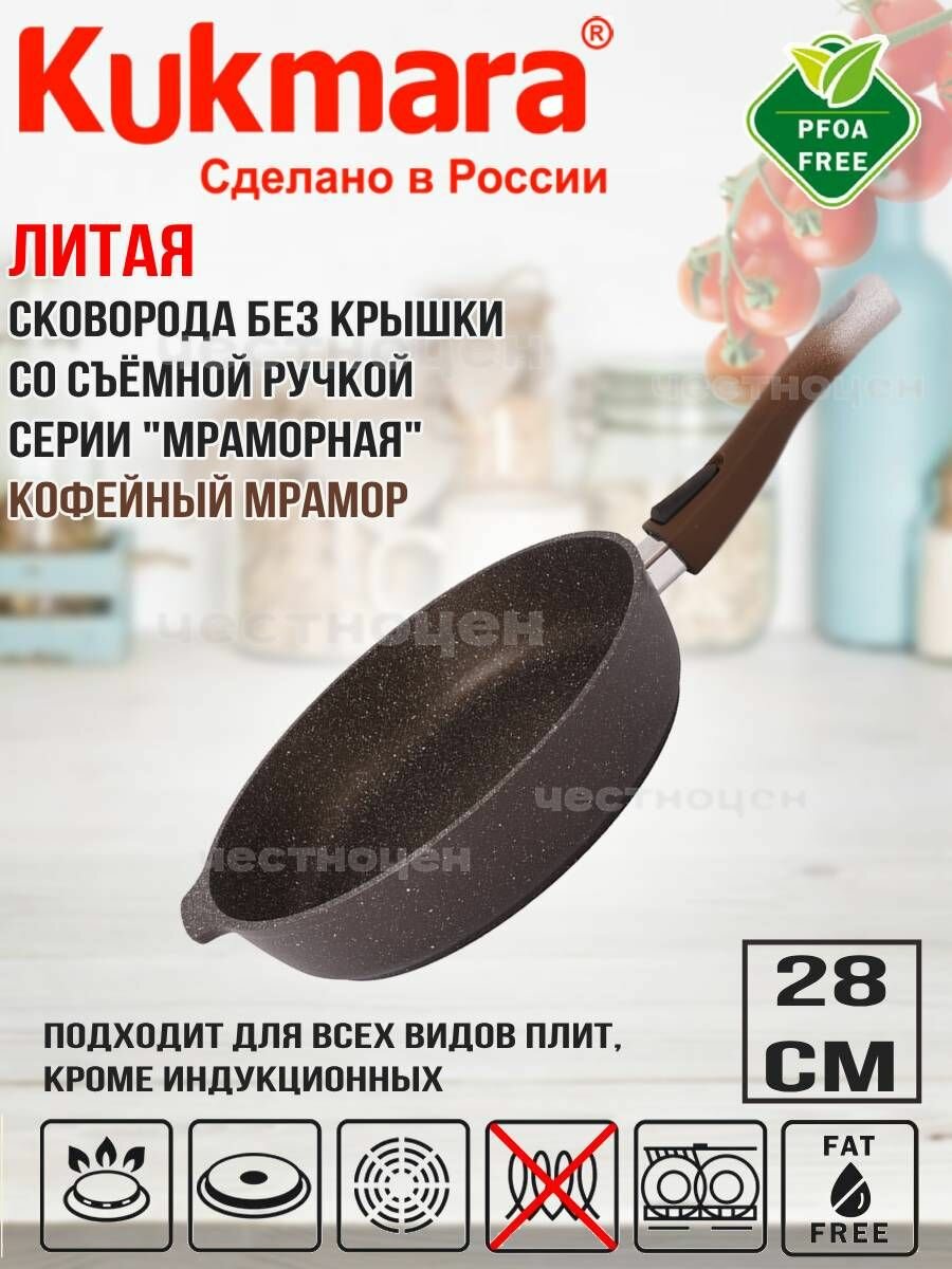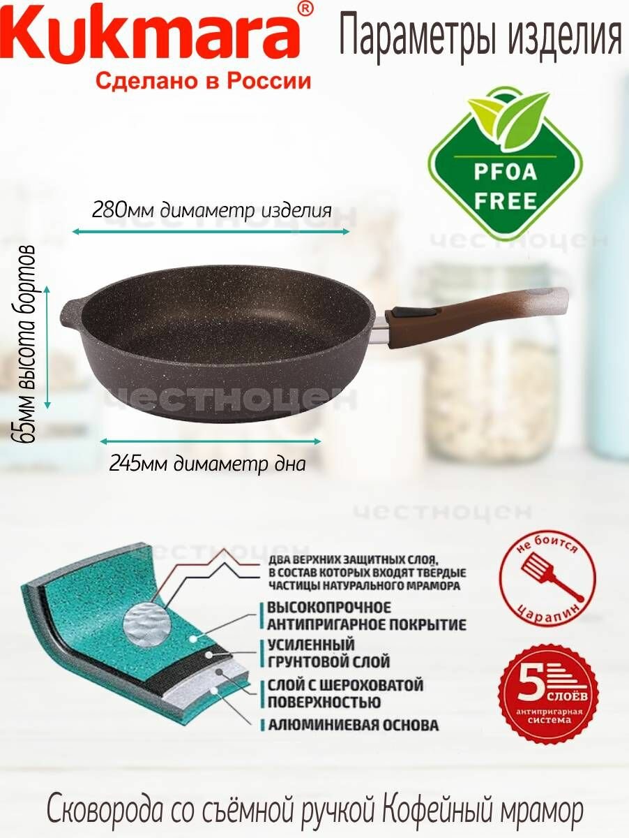 Купить Сковорода Kukmara 280/65мм со съемной ручкой, АП, кофейный мрамор смк283а
