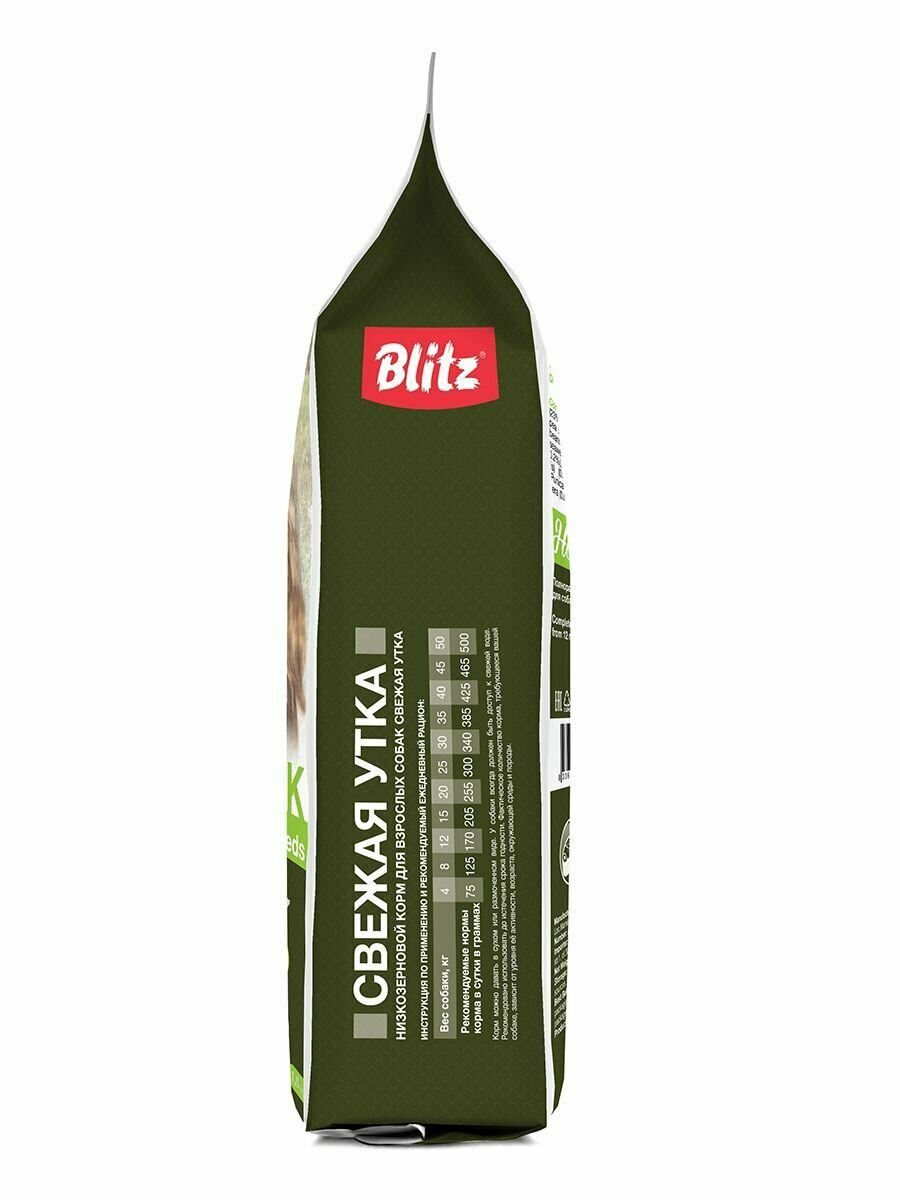 Корм для собак BLITZ низкозерновой, свежая утка сух. 500г