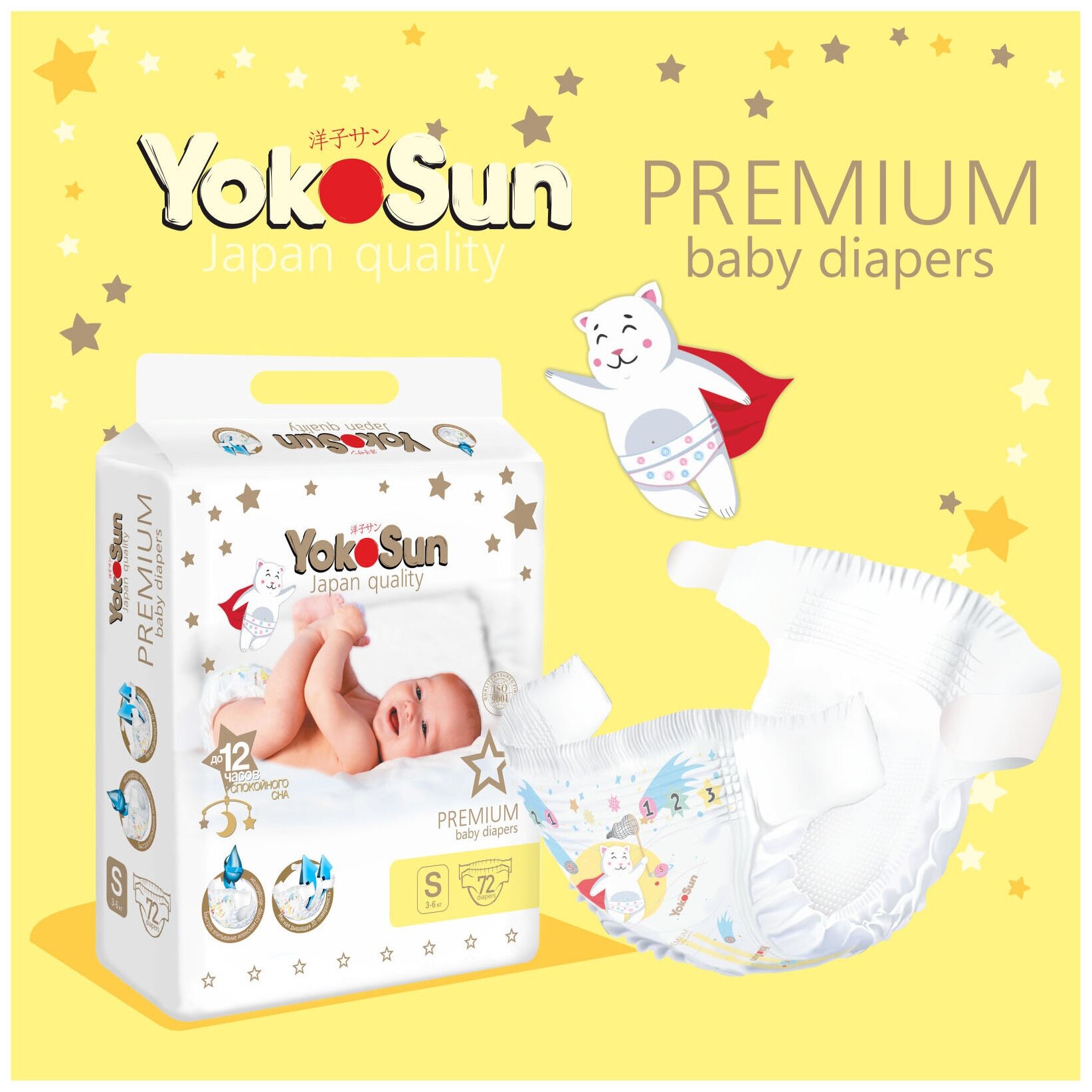 Купить YokoSun подгузники Premium S, 3-6 кг, 72 шт., белый