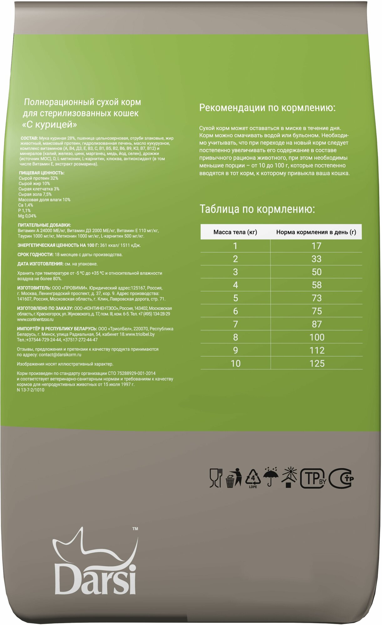 Darsi Sterilised сухой корм для кошек Курица, 0,3кг, 1шт