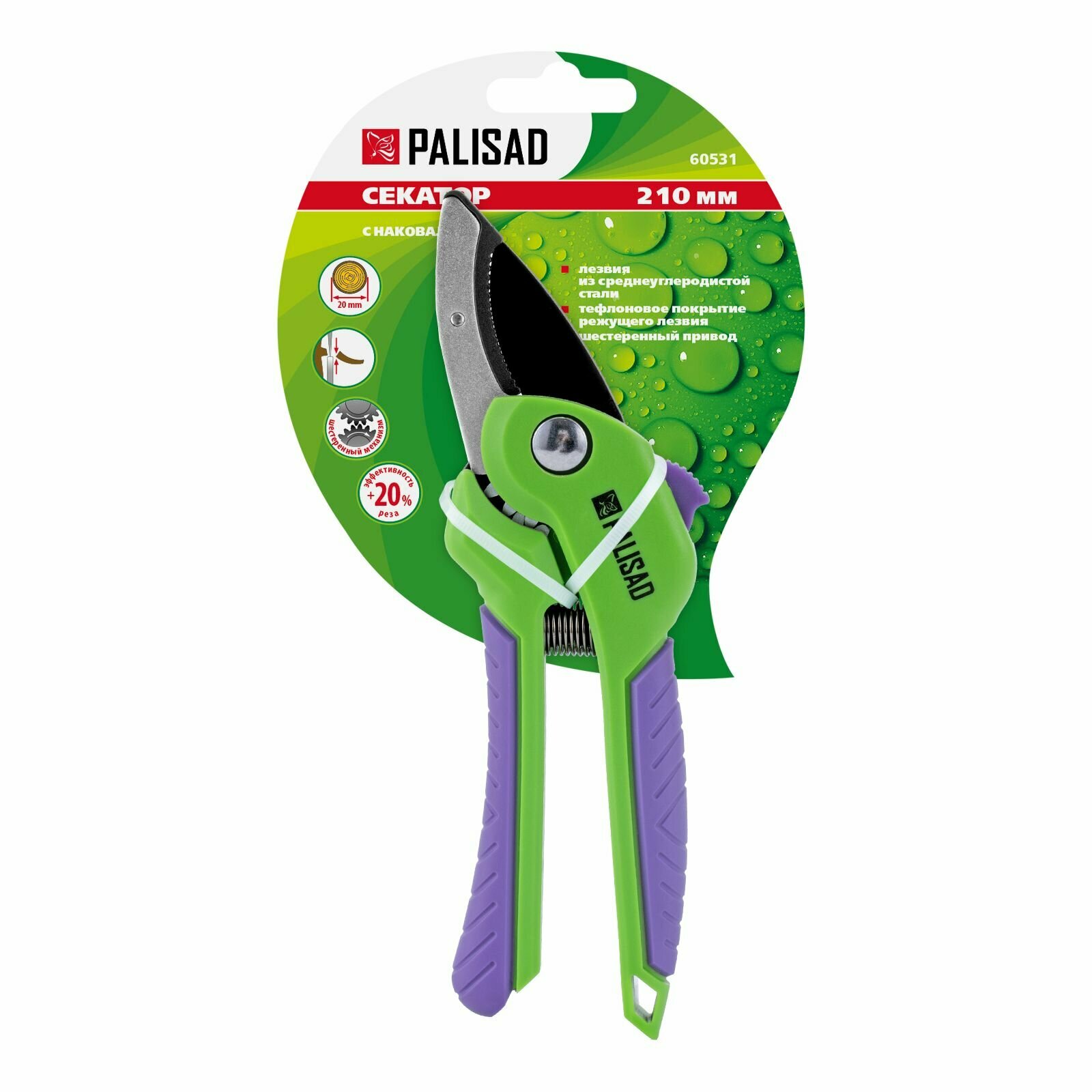 Секатор с наковальней, 210 мм, шестеренный привод, двухкомпонентные рукоятки// Palisad 60531 .