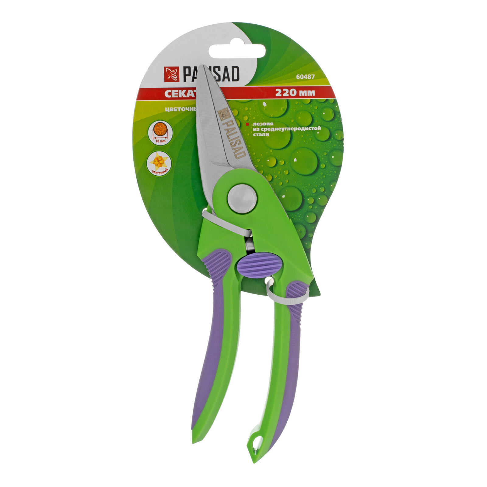 Садовые ножницы PALISAD цветочный, двухкомпонентные рукоятки, 60487 зеленый/фиолетовый
