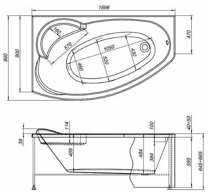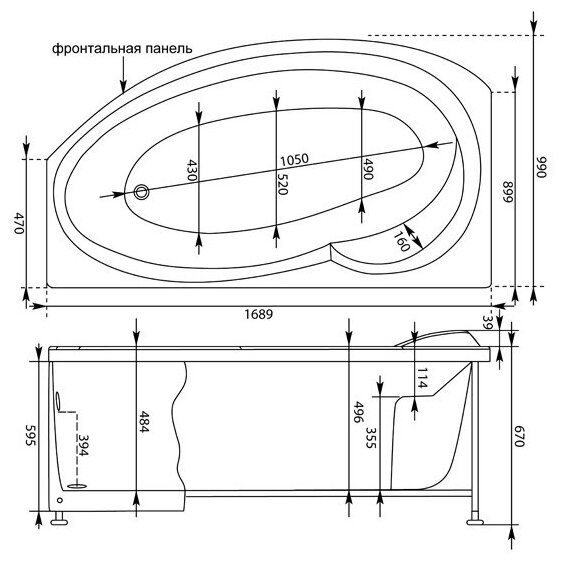 Акриловая ванна Aquanet Jersey 170x90 L 205405 с каркасом, цвет Белый. интересное: